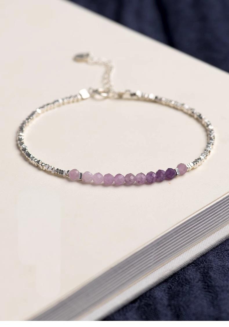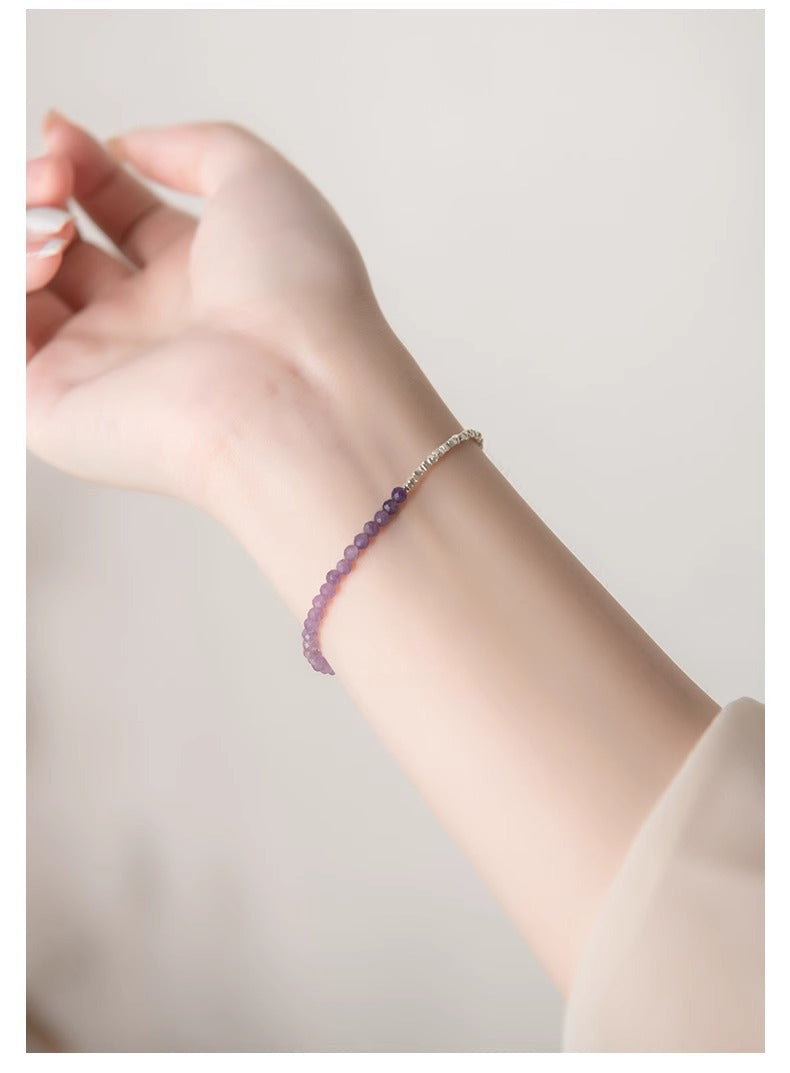 Crystal Oracle 2mm Natural Amethyst Bracelet | 925 Silver Stackable Chain | Healing Crystal Gift for Women