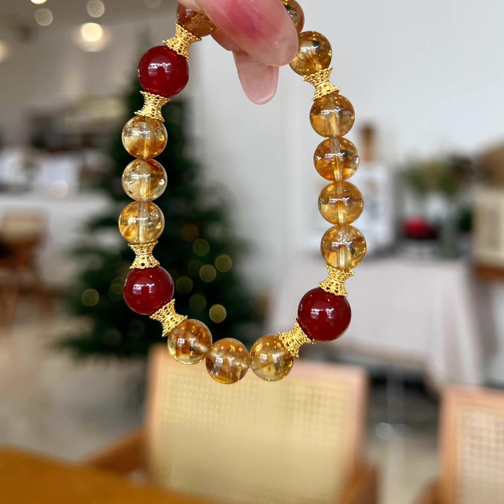 This handcrafted gemstone bracelet combines the abundance-attracting power of natural citrine with the courage-boosting energy of red agate, creating a dynamic duo for financial growth and decisive action. Designed with 8-10mm high-quality beads, it’s a minimalist yet potent tool for manifesting prosperity.