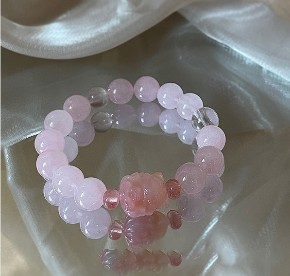 Crystal Oracle Divine Tears Nine-Tailed Fox Madagascar Rose Quartz Bracelet – Original Chinese Feng Shui Natural Agate Love & Wealth Energy Jewelry 10mm