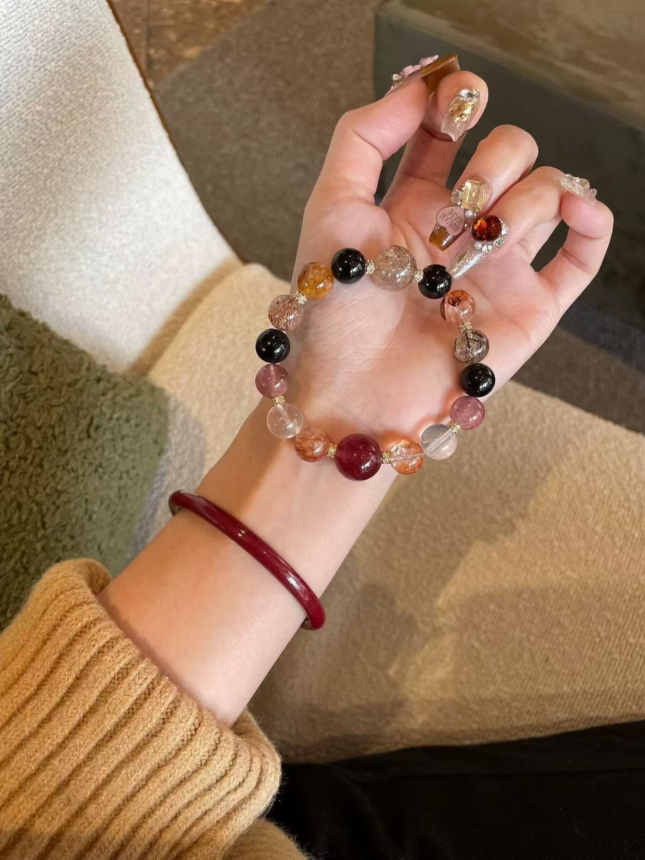 - Color Alchemy: The gradient of black → red → pink beads symbolizes a journey from protection (black) to passion (red) to love (pink).