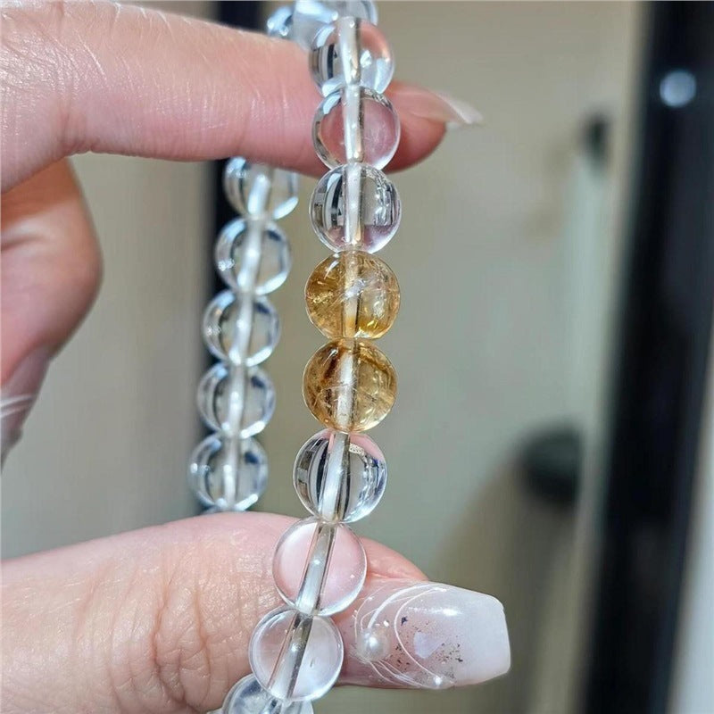Crystal Oracle Natural White Quartz & Citrine Pyramid Bracelet – Natural Pyramid Inclusions, Minimalist Stackable Jewelry